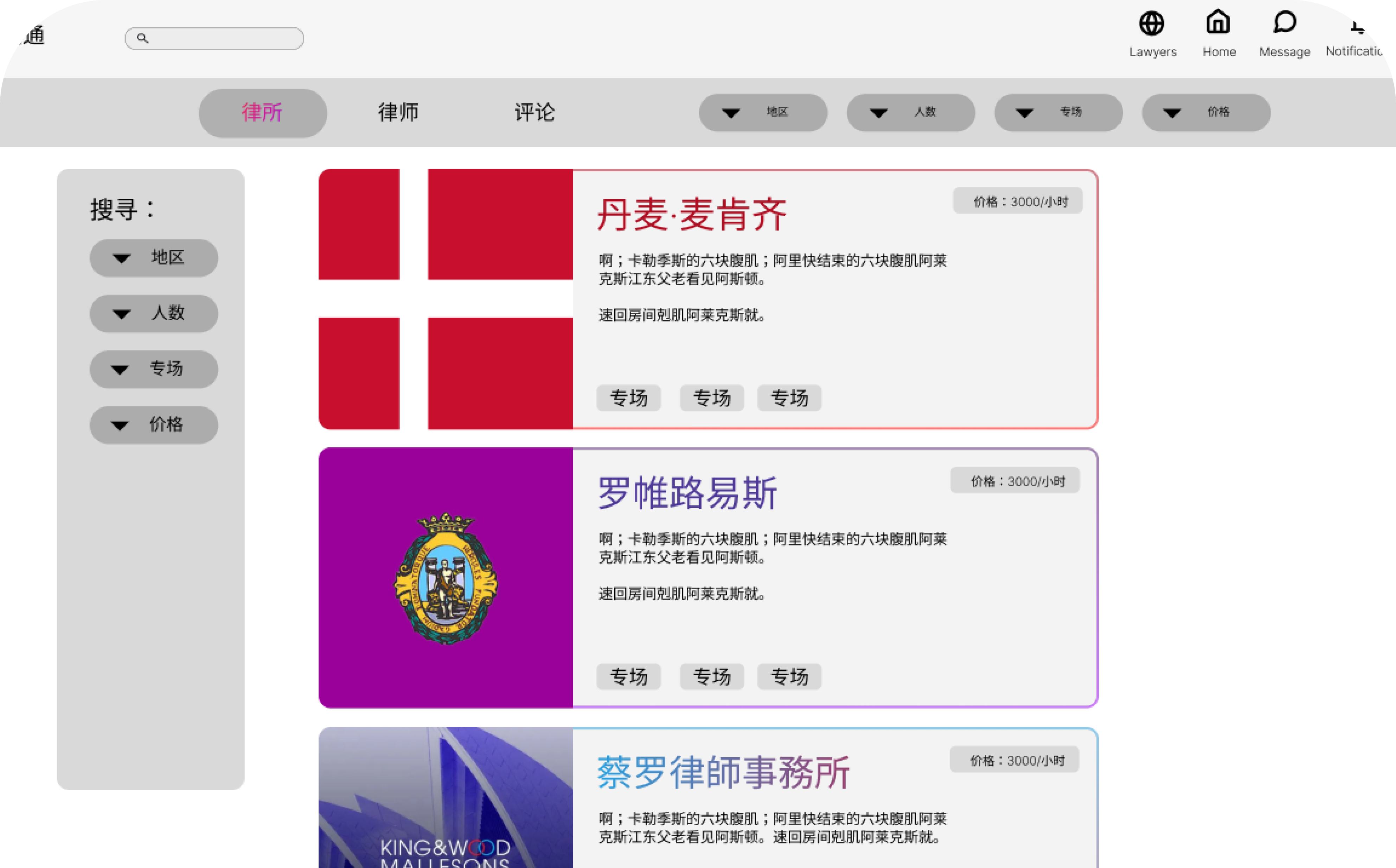 Use our Messaging Function to message and connect with Lawyers from all regions.