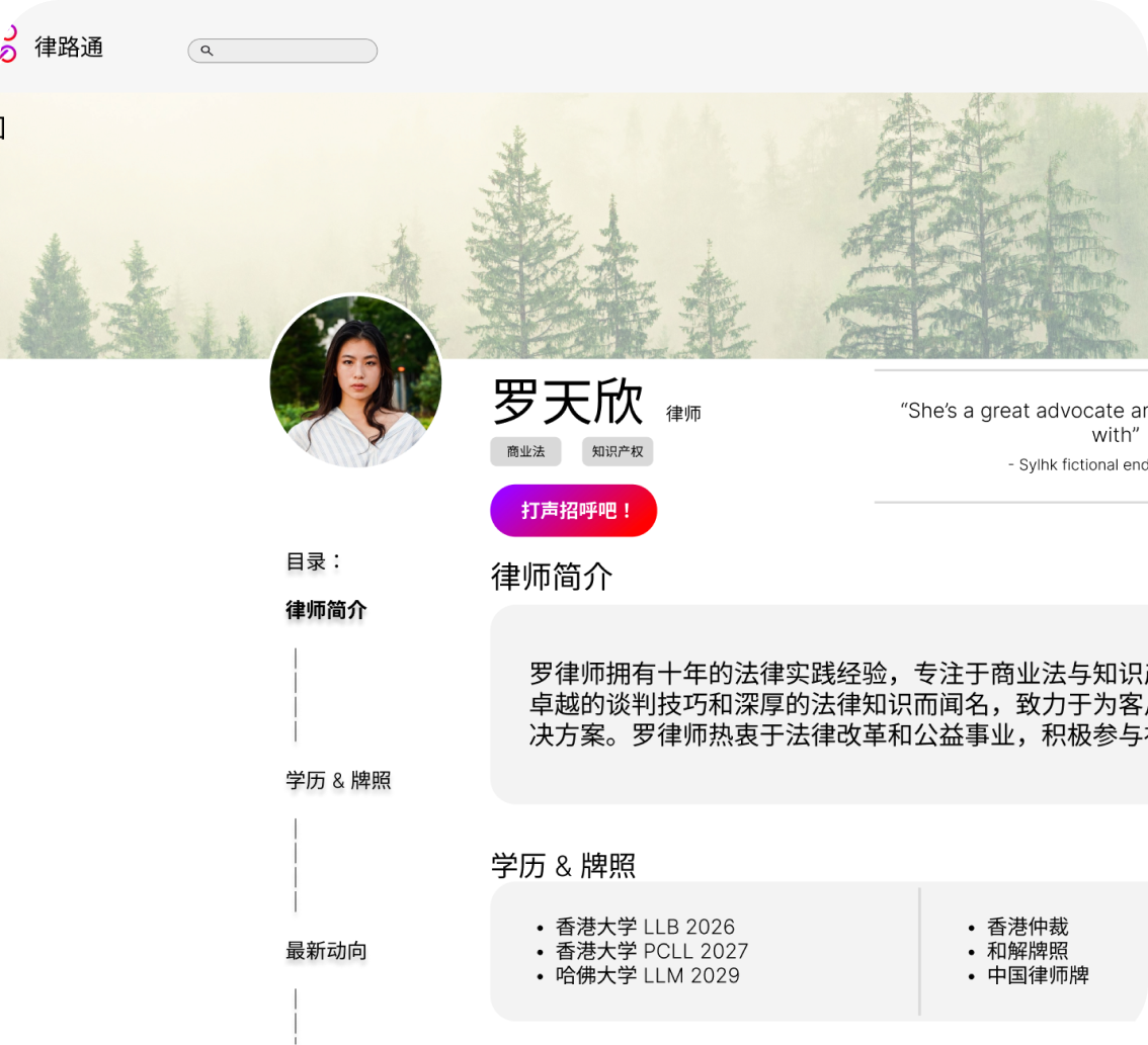 Build meaningful connections in regions to foster business opportunities and grow your understanding of the Legal Industry of unfamiliar regions. Or use this function to find specific lawyers to help you with niche and specific matters.